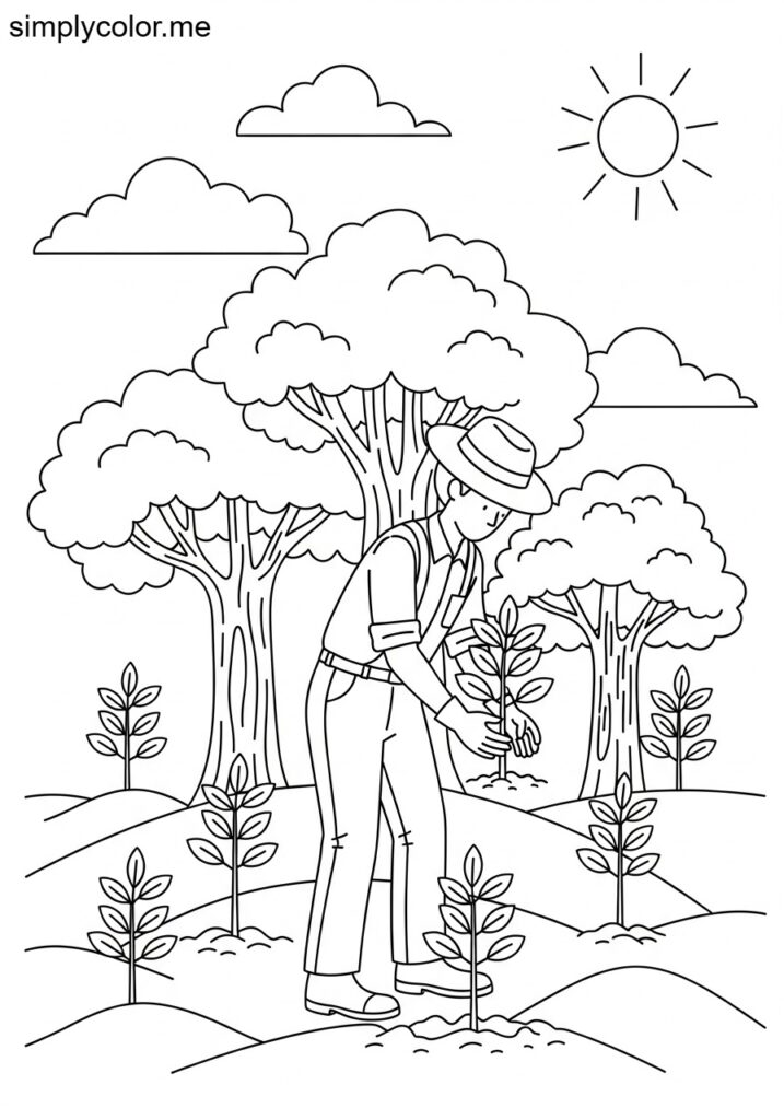 Grab your crayons and join our friendly forester in planting new trees! This printable coloring page is perfect for a relaxing afternoon activity. Download, print, and let your little ones bring this forest scene to life with their favorite colors. Happy coloring!