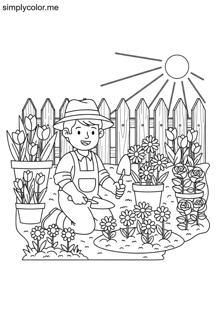 Let your little ones bring this sweet gardening scene to life! Grab your crayons and add bright colors to the flowers, the happy gardener, and the sunny garden. Download, print, and enjoy a fun creative time together!
