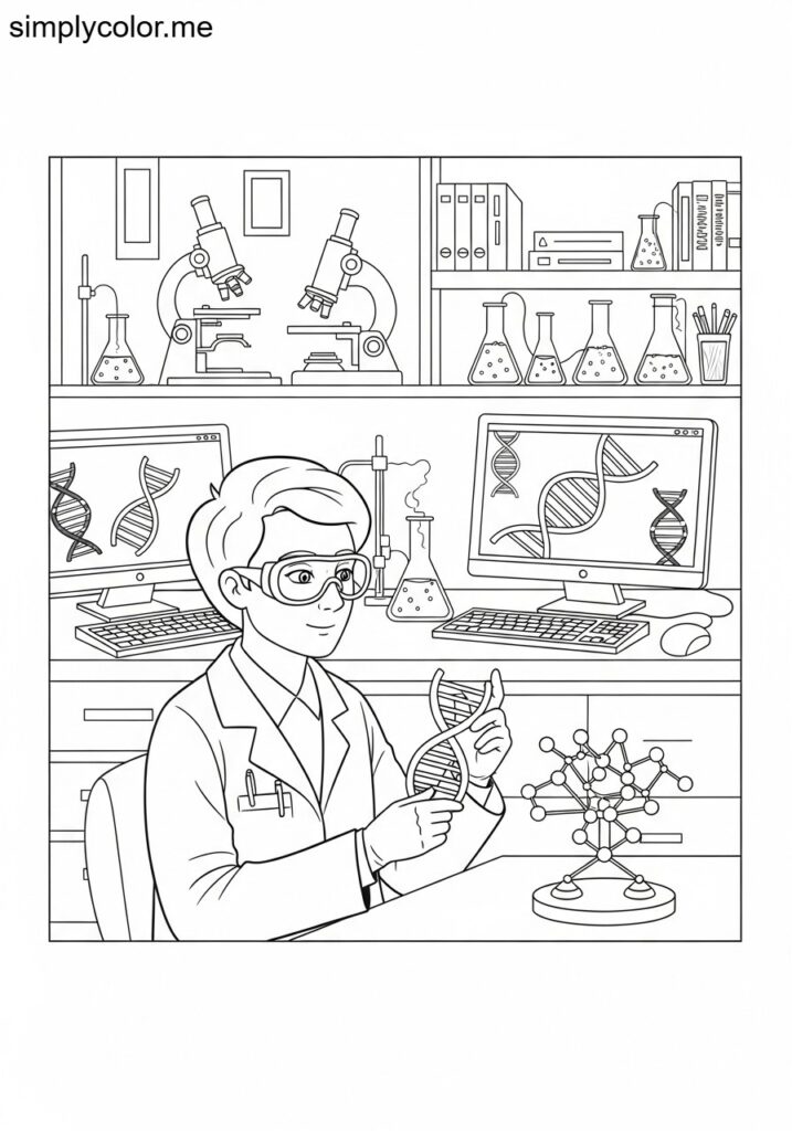 Let your little scientist bring this DNA lab scene to life with colors! This fun printable coloring page features a geneticist at work, perfect for sparking curiosity about science. Download, print, and create your own laboratory masterpiece!