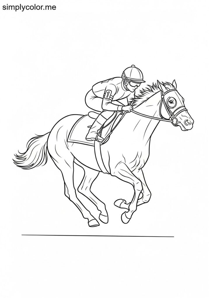 Grab your crayons and bring this speedy duo to life! Our printable coloring page features a jockey and his powerful racehorse, ready for a day at the tracks. Perfect for little artists who love action and animals. Download, print, and create your own winner!